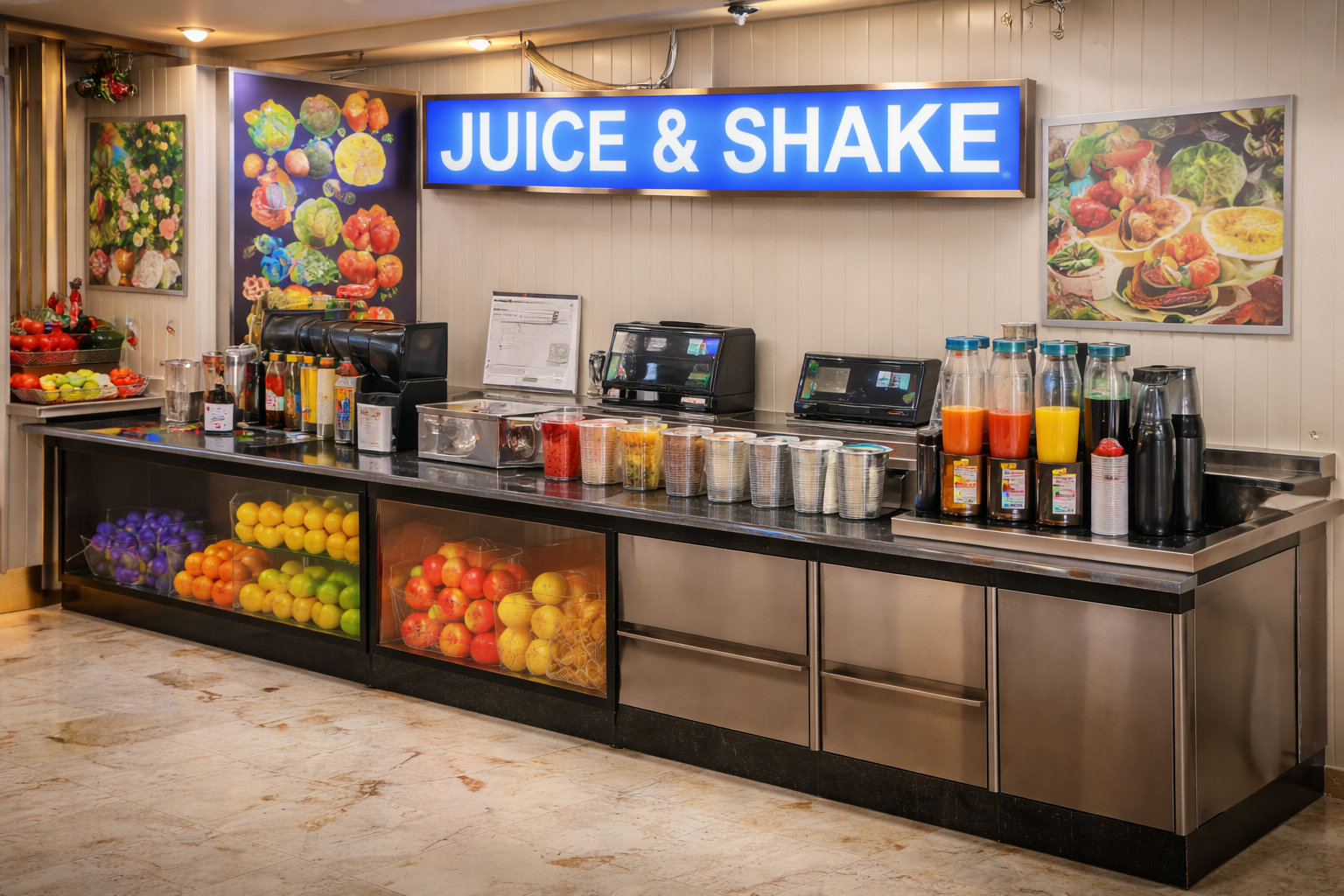 Fresh juice & beverage display counters