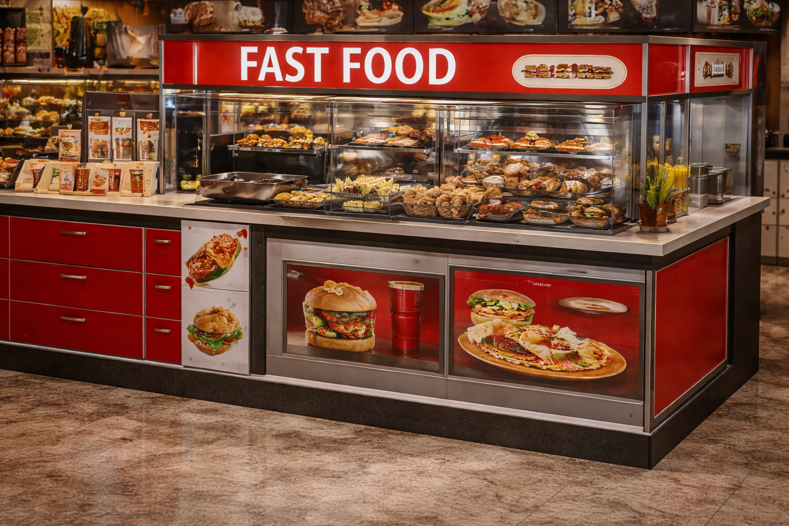 Burger, pizza & snack counters